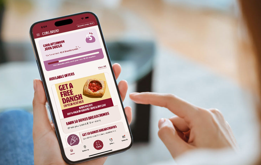 When you’ve earned 200 Breadcrumbs, you will be issued a $5 voucher that you can redeem on your next in-bakery purchase at COBS Bread! Plus, keep an eye out for additional offers in our emails and rewards just for you in your COBS Bread app.